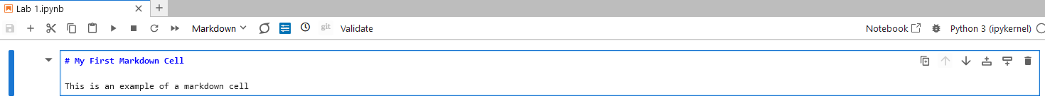 A markdown cell contains text formatted using Markdown, which is a lightweight markup language that can be used for writing formatted text.