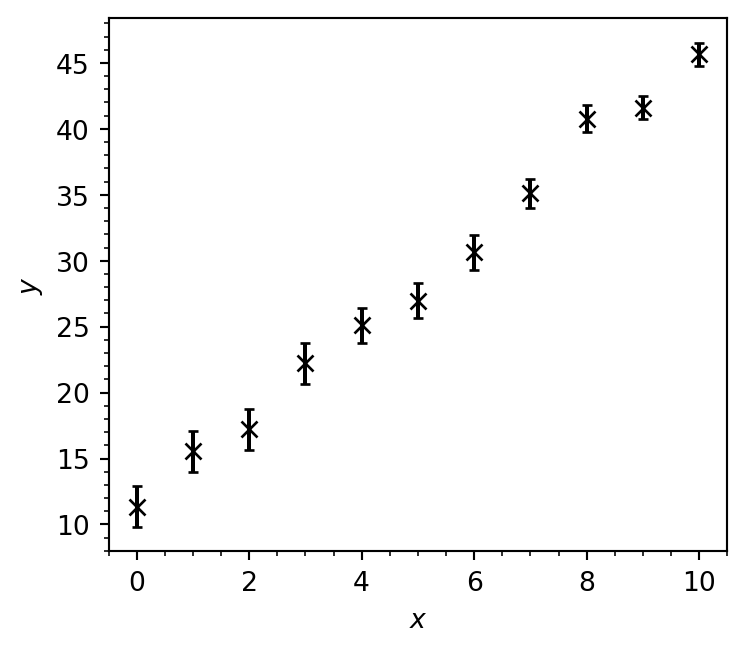 Let’s add some uncertainty to the experimental \(y\)-data from our previous example: