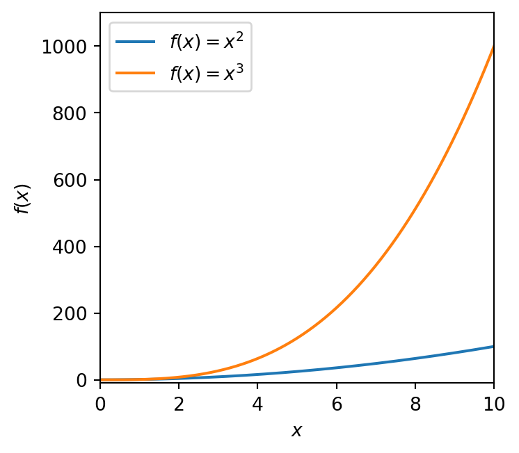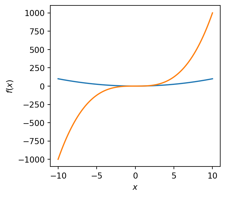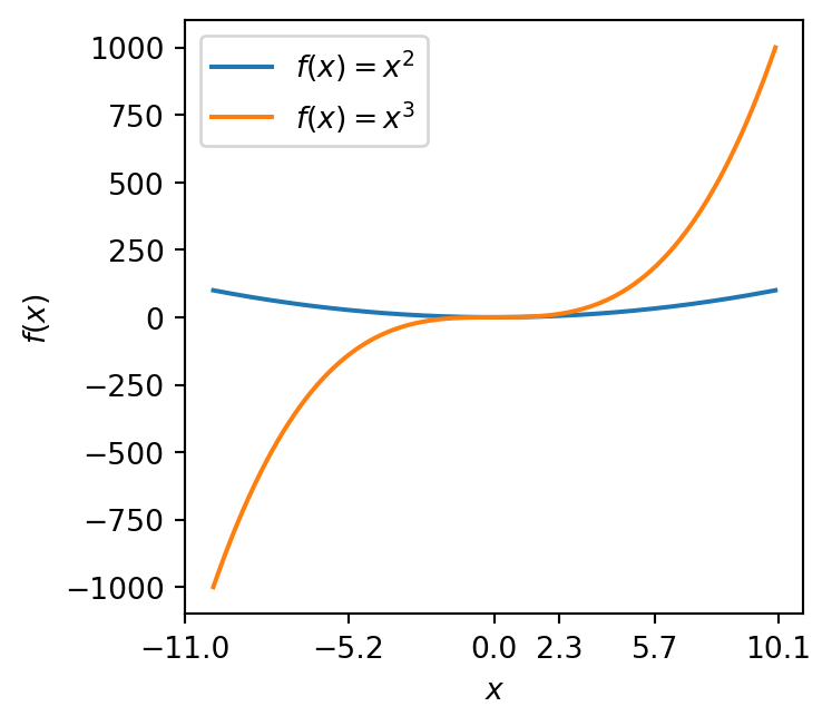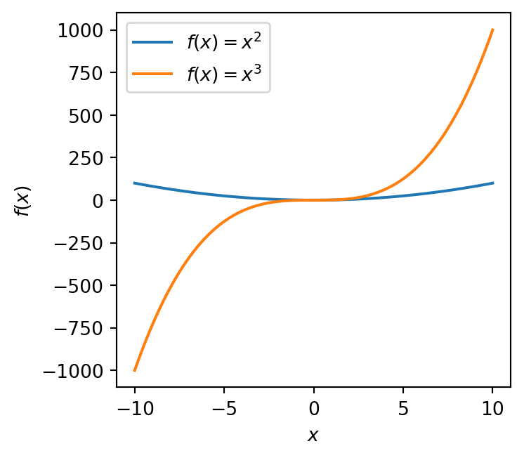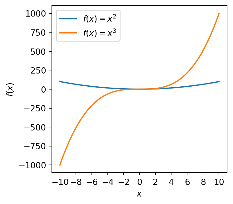 ax.plot(x, x ** 3, label=r'$f(x) = x^3$')
