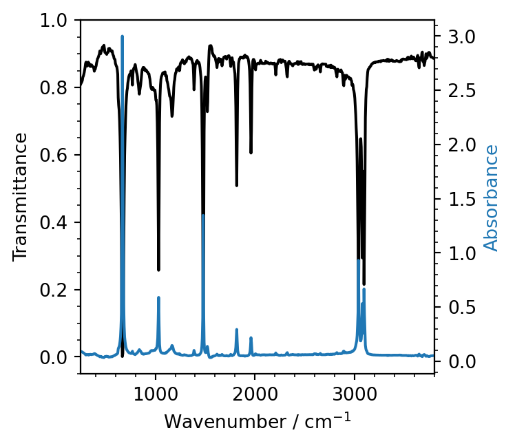aax.plot(wavenumber, absorbance, color='C0', label='Absorbance')