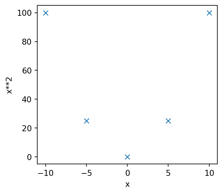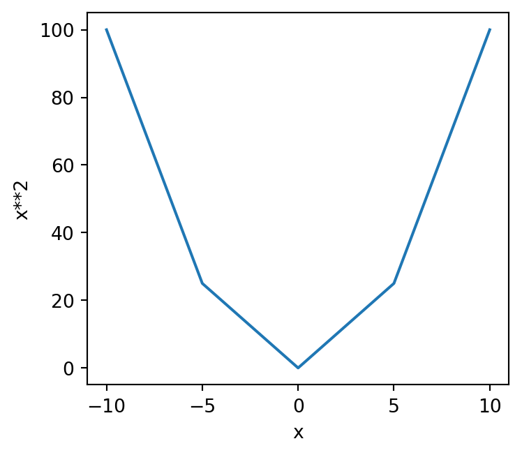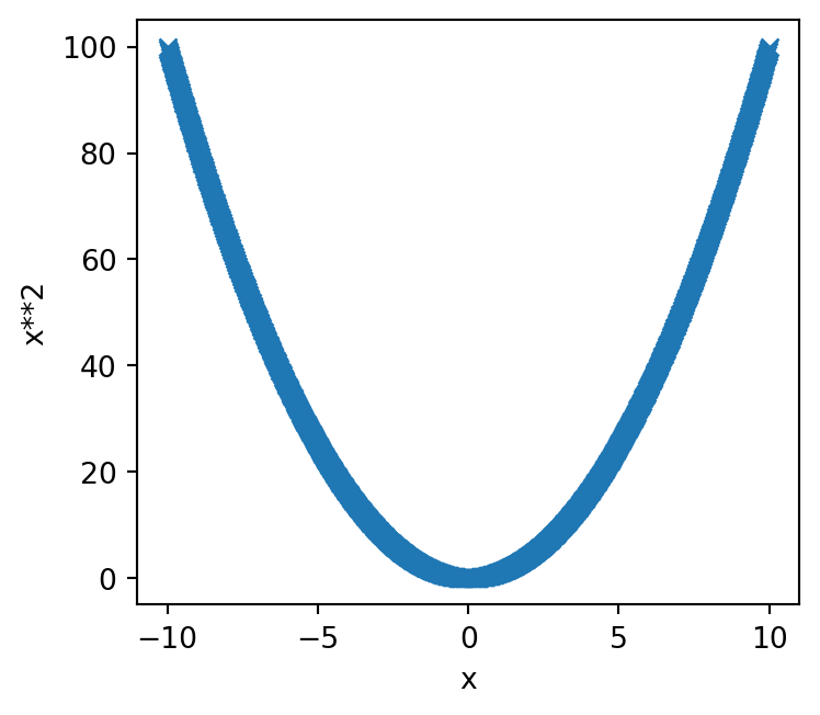 As we noted earlier, we can improve our axis labels by including mathematical notation. Our \(y\) axis has used x**2 but really this should employ a superscript \(x^2\).