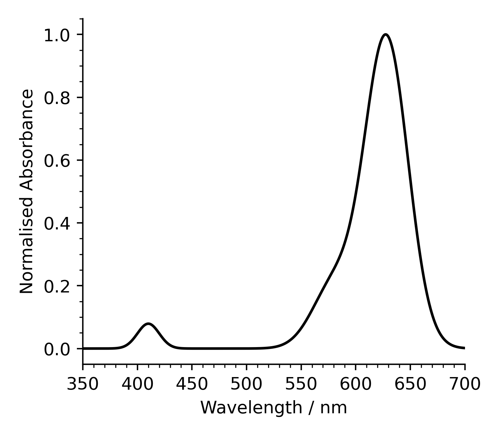 'uv_vis_data/t_0p0.csv'Now plot this spectrum as normalised absorbance as a function of wavelength - make sure to follow the advice in plotting tips.